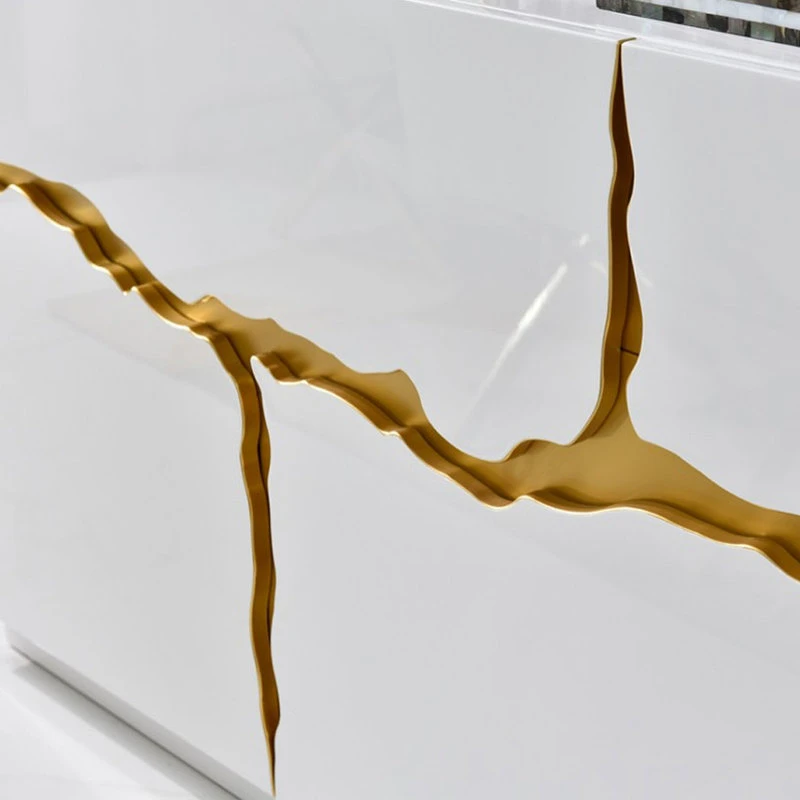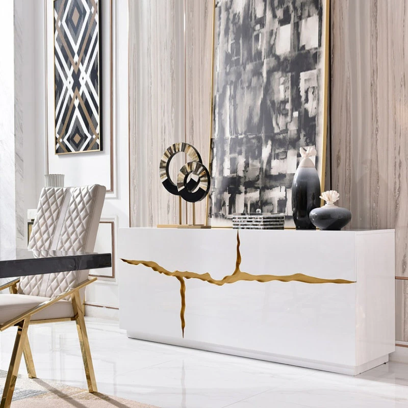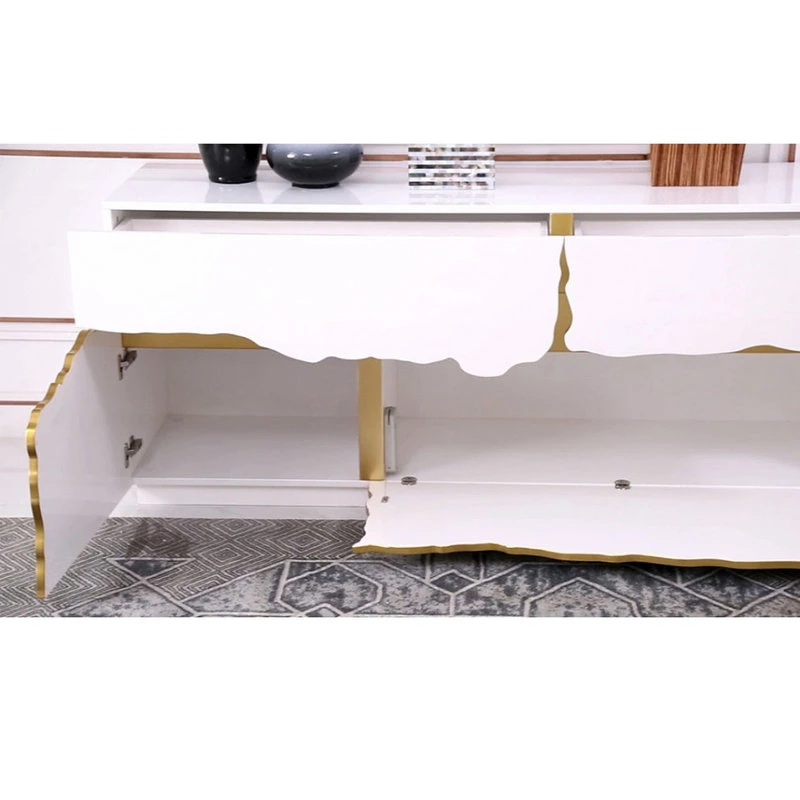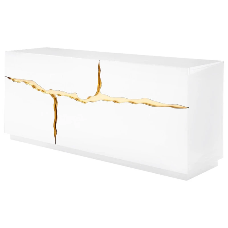 Piaz Gold Sideboard, Luxe Glam Buffet Cabinet Credenza is perfect for any room. The Piaz Sideboard features stunning Gold painted accents that flow through the unit like lava streams. The Piaz Sideboard offers plenty of storage space for all your home goods. The Piaz Sideboard works great as a buffet, cabinet, credenza or sideboard. The Piaz Sideboard compliments any lux, glam, modern, contemporary, luxury or eclectic interior designs.
