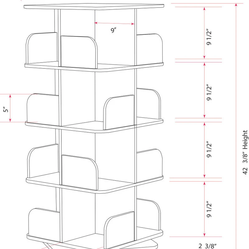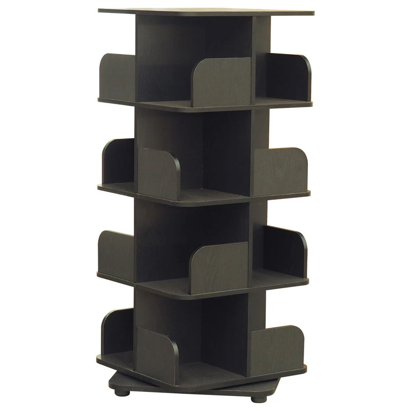 Oneonta 4 Tier Revolving Bookcase Tower Display Unit with 16 Shelves, Black Wood, Contemporary. This clean-lined Oneonta Revolving Bookcase rotates a full 360 in either direction, allowing for easy access. The unique design provides a practical storage solution for any space and helps you maximize storage space. Blending with any decor, this Oneonta Revolving Bookcase is suitable for any style of the room, and the minimalist style will perfectly match any room in your home or office.