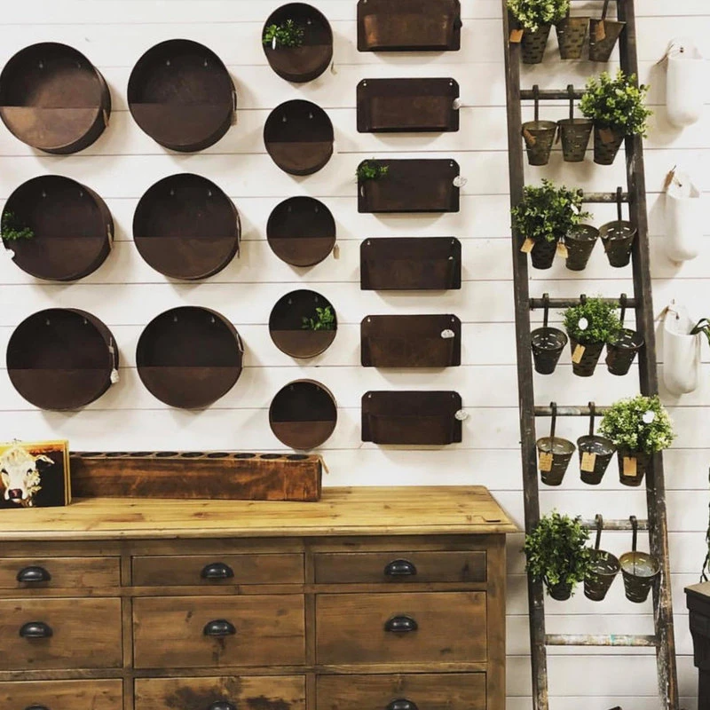- Materials: Reclaimed wood with bronze handles