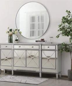 Elegant Furniture & Lighting Elegant Decor Contempo 4 Door 72″ Mirrored Sideboard In Antique Silver