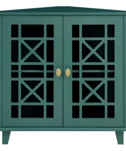 Walker Edison Gwen Fretwork Corner Accent Cabinet – Dark Teal