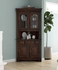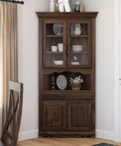 Sierra Living Concepts Inc Carlinville Rustic Solid Wood Glass Door Corner Hutch