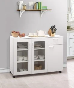 Pilaster Designs Gremlin Wheeled Kitchen Storage Sideboard Buffet Cabinet With Adjustable Shelves