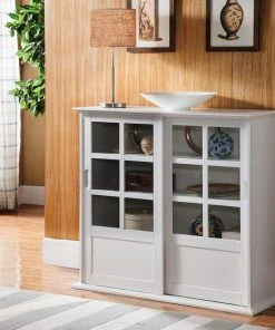 Pilaster Designs Brecker Sliding Door China Curio Cabinet With Adjustable Storage, White