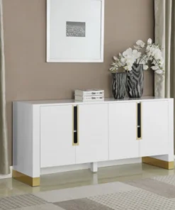 Meridian Furniture Florence Lacquer Sideboard/Buffet With Gold Finish, White