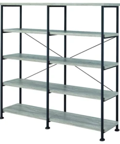 Benzara, Woodland Imprts, The Urban Port Contemporary Style Wood And Metal Open Bookcase, Gray