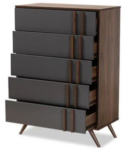 Baxton Studio Naoki Modern Two, Tone Gray Walnut Finished Wood 5, Drawer Bedroom Chest
