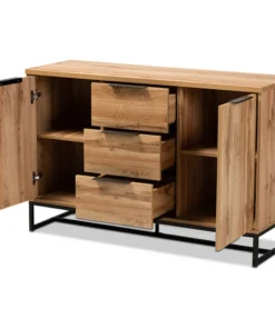 Wholesale Interiors Reid Modern Industrial Oak Wood And Black Metal 3-Drawer Sideboard Buffet