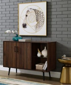 Walker Edison 44″ Midcentury Modern Asymmetrical Sideboard, Dark Walnut