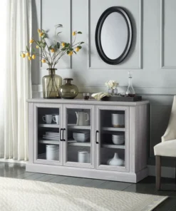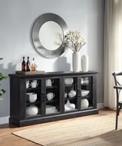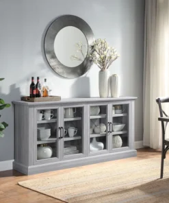 Belleze 70″ Rustic Wood Sideboard Stand 4 Doors Buffet Cabinet, Gray Wash
