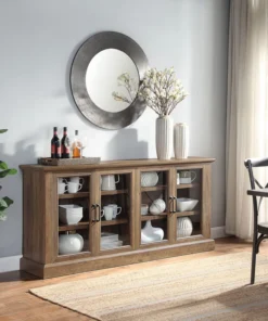 Belleze 70″ Rustic Wood Sideboard Stand 4 Doors Buffet Cabinet, Rustic Oak