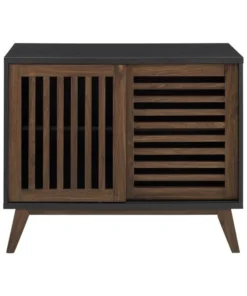 Walker Edison 36″ Sliding Slat Door Storage Accent Cabinet, Black / Dark Walnut