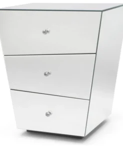 Zuri Furniture Modern Vailan Side Table Clear Mirrored Glass Finish 3 Drawers Clear Pulls