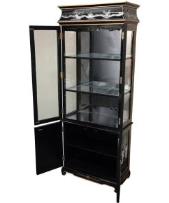 Oriental Furniture Lacquer Curio Cabinet, Black Mother Of Pearl Ladies