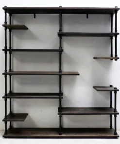 Furniture Pipeline Nashville Industrial Mid-Century Etagere Bookcase,Black Metals & Espresso Wood