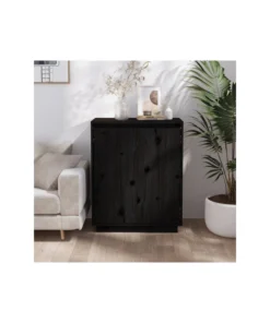Vida XL International B.V. VidaXL Solid Wood Pine Sideboard Black Storage Cupboard Side Door Cabinet