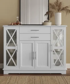 Belleze Ryland 47″ Wood Storage Sideboard Buffet Cabinet Console Table, White