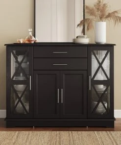 Belleze Ryland 47″ Wood Storage Sideboard Buffet Cabinet Console Table, Black