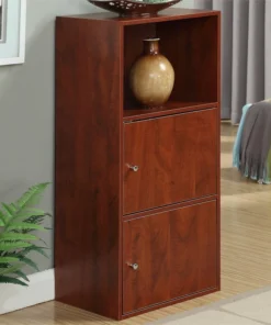 Convenience Concepts Xtra Storage Two-Door Bookcase In Cherry Wood Finish