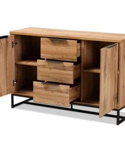 Baxton Studio Reid Industrial Sideboard Buffet – Oak, Black, 3-DRAWER