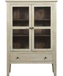 Progressive Furniture Isabella Display Cabinet – Washed Linen, Pine