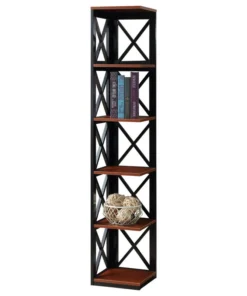 Convenience Concepts American Heritage Ladder Bookcase With File Drawer In Warm Cherry Wood Finish
