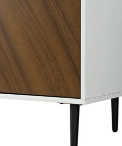 Walker Edison 58″ Modern Bookmatch Buffet TV Stand – White And Teak