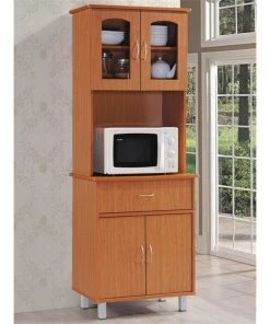 The classic style and warm cherry finish of this curio make it adaptable to many settings. The front of the case is constructed with a two-way sliding door with lock. The back of the case is mirrored. Five adjustable glass shelves can be found in theinterior, along with one halogen can light with a roll-switch. The case is decorated with reeded pilasters, rosettes and elegant trim and moldings.