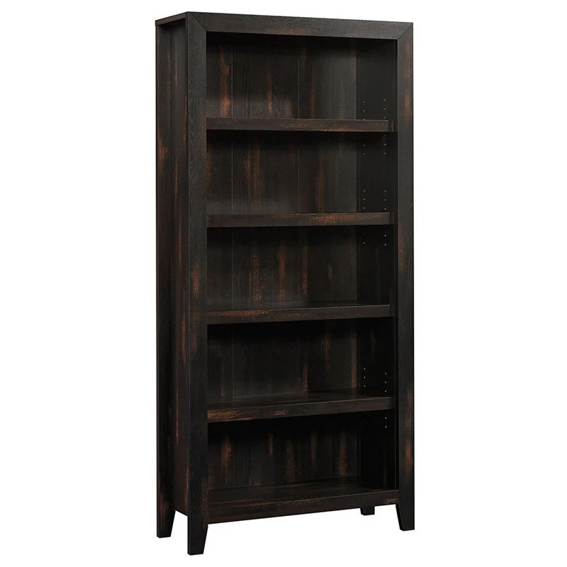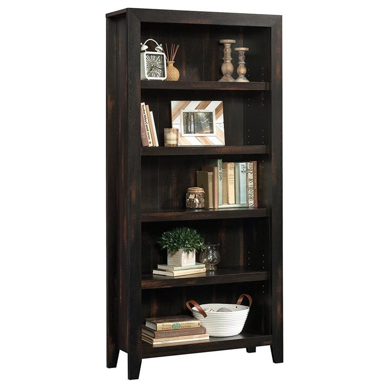 Elevate your décor while providing versatile storage and display with this 5-shelf bookcase from the Dakota Pass® collection. This tall bookcase features five shelves for storing and displaying books, home décor, photos of your loved ones, board games, and so much more. This 5-shelf bookshelf includes three adjustable shelves, allowing you to customize your storage options for versatile display options. Create a convenient place for your tall books, decorative vases, or a lamp. Assembly is a breeze with slide-on moldings that allow for a stress-free assembly process, giving you more time to organize the living room, hallway, or office with your new display bookcase. Finished in Char Pine®, this handsome wood bookcase will have your home looking organized in no time. We hope you like what you see. Sauder designers travel the world and bring back the best and latest in style, finish, and color trends. This inspiring world travel is evident in the cutting edge and innovative furniture solutions we offer to you, like this stylish living room bookcase!