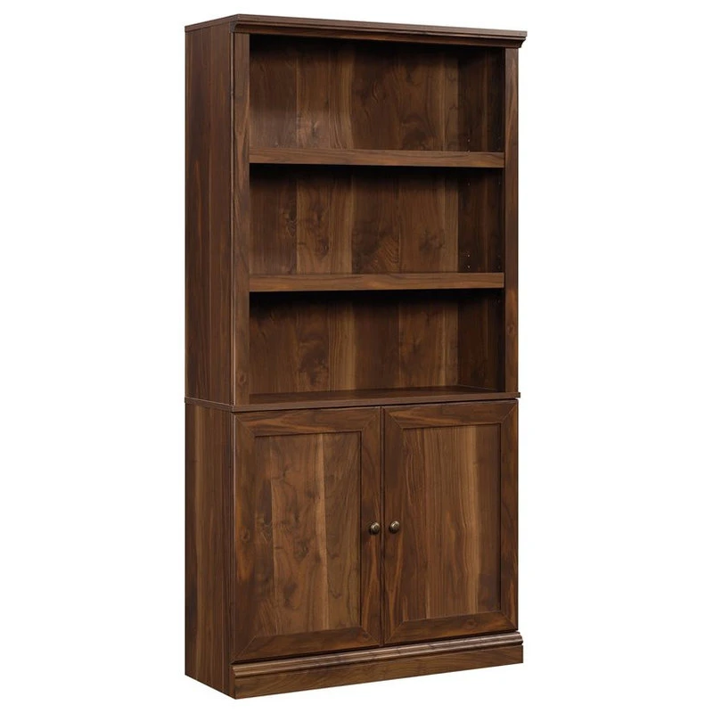 Store it or display it. Create the additional storage options your home needs without having to sacrifice on the style that you love with this bookcase with doors from the Sauder Select collection. This library bookcase features three large shelves that provide you with all the space you need to store and display a variety of different items like your favorite novels, a wireless speaker, decorative plants, and framed photos of your family and friends. Included are three adjustable shelves that can move to different heights to create flexible storage and display for items of all shapes and sizes. Behind the doors is a hidden storage area for additional options to stow away items that you prefer to keep hidden. Its beautiful style and versatile design make this bookcase with doors a great fit for any room. Finished in Grand Walnut and detailed with attractive hardware, this library bookcase with doors is just what your home is missing.