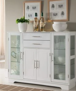 Pilaster Designs Elias Kitchen Storage Sideboard Buffet Cabinet With Glass Doors, Drawers
