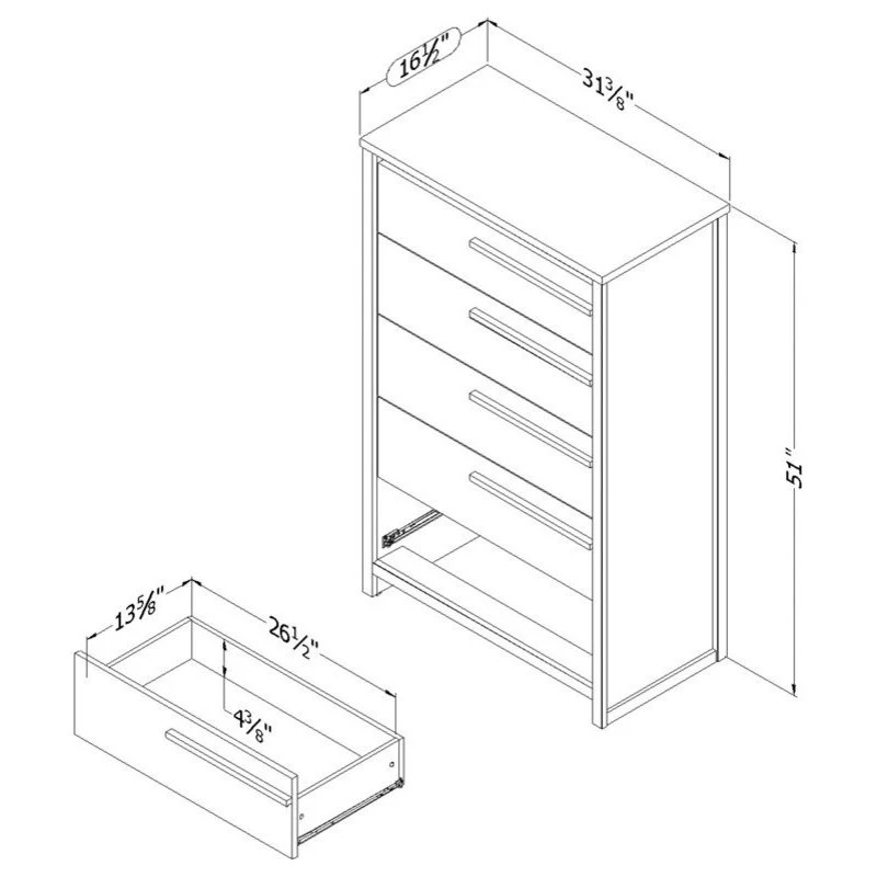 This 5-drawer chest, with its urban look, lets you create an elegant, distinctive ambiance in your bedroom. The drawers provide maximum storage space, and the unique looking clean lined handles give this piece a lot of personality.