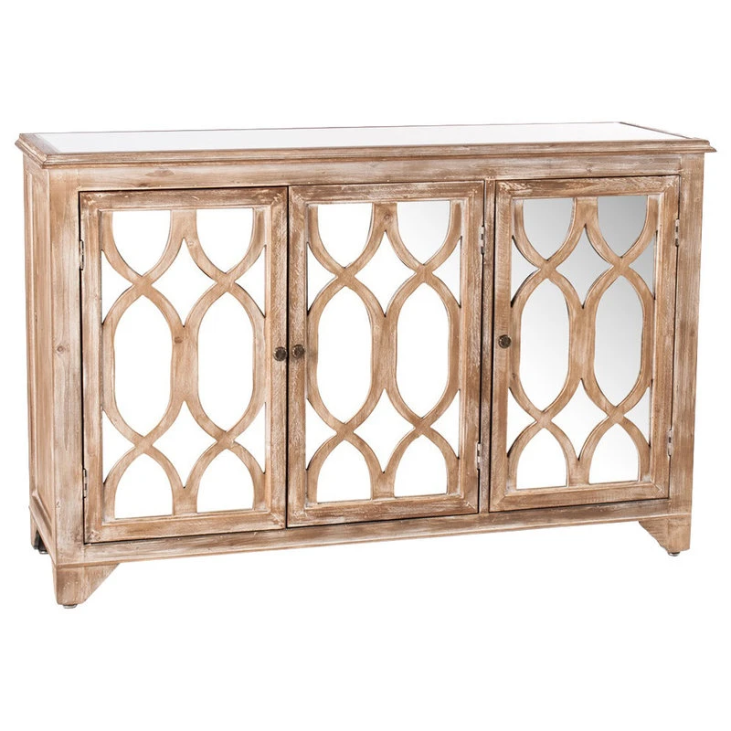 Update your home decor with the gorgeous Hannah Buffet. A versatile piece features mirrored doors, detailed wood overlay and natural, neutral hues. Accessorize the Hannah Buffet with your favorite vases and photo frames to add your own personal touch and complement your current home decor. A functional and stylish piece that will effortlessly elevate any space of your home.