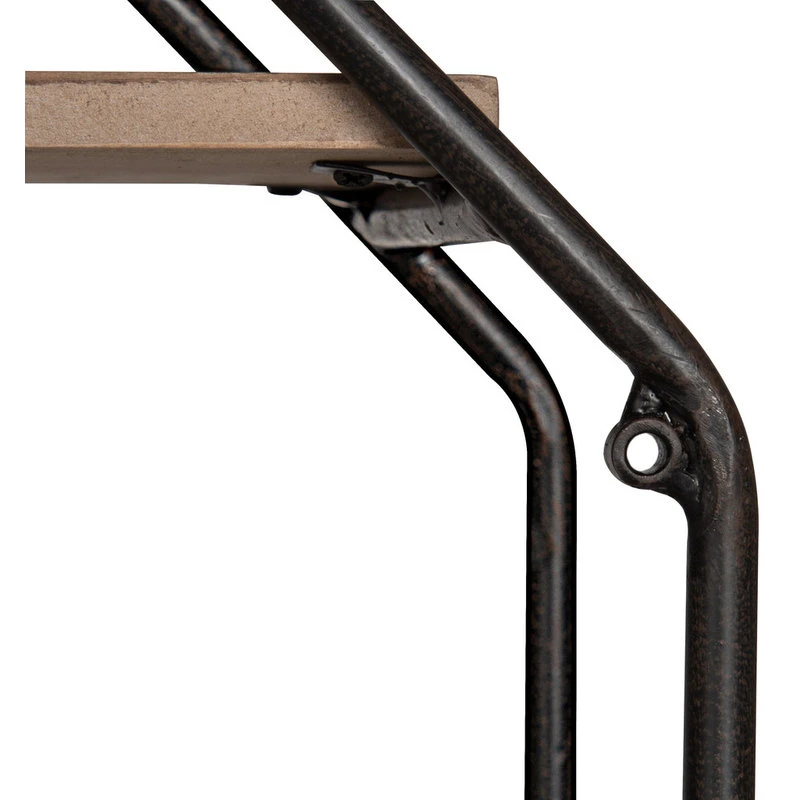 - Rustic floating shelves are constructed of solid wood with a metal frame.