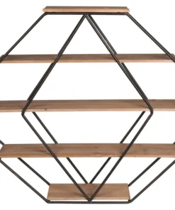 - Decorative octagon floating wood wall shelves with black metal frame and 5 shelves.