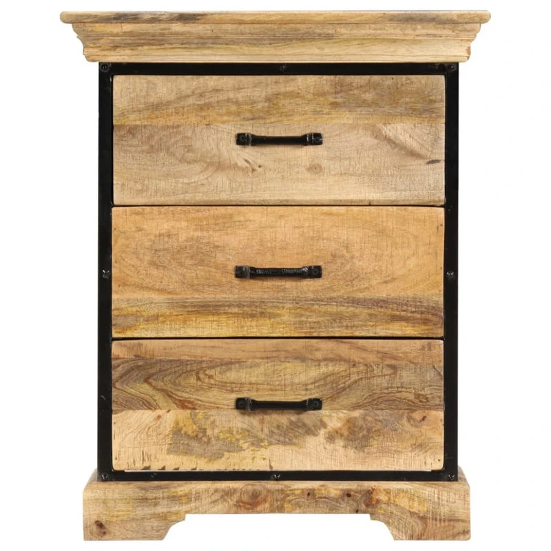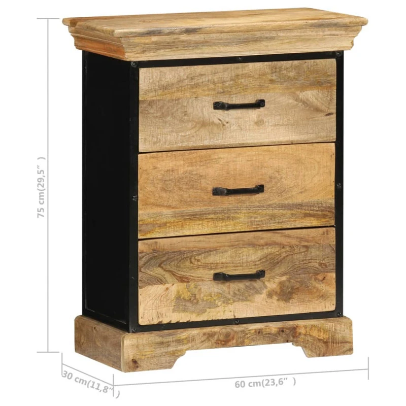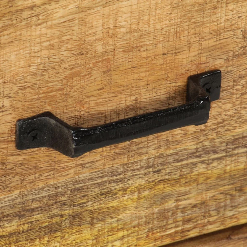 This classy chest of drawers exudes a vintage charm and will be the center of attraction for your interior. This retro drawer cabinet is made of solid mango wood, a hardwood with dense grains. Rough mango wood not only has the strength to bear the weight, but also stands the wear and tear of time. As a consequence, this beautifully-designed side cabinet is considerably stable, durable and eye-catching. Additionally, the powder-coated iron frame adds the commode’s industrial style. The craftsmanship and the graceful wood grains make every piece of furniture distinctive and slightly different from the next. Besides, this sideboard features 3 drawers, providing commodious space for storing your clothing, books, as well as various other items. Important note: The wood grains vary from piece to piece, making each piece unique; the delivery is random.