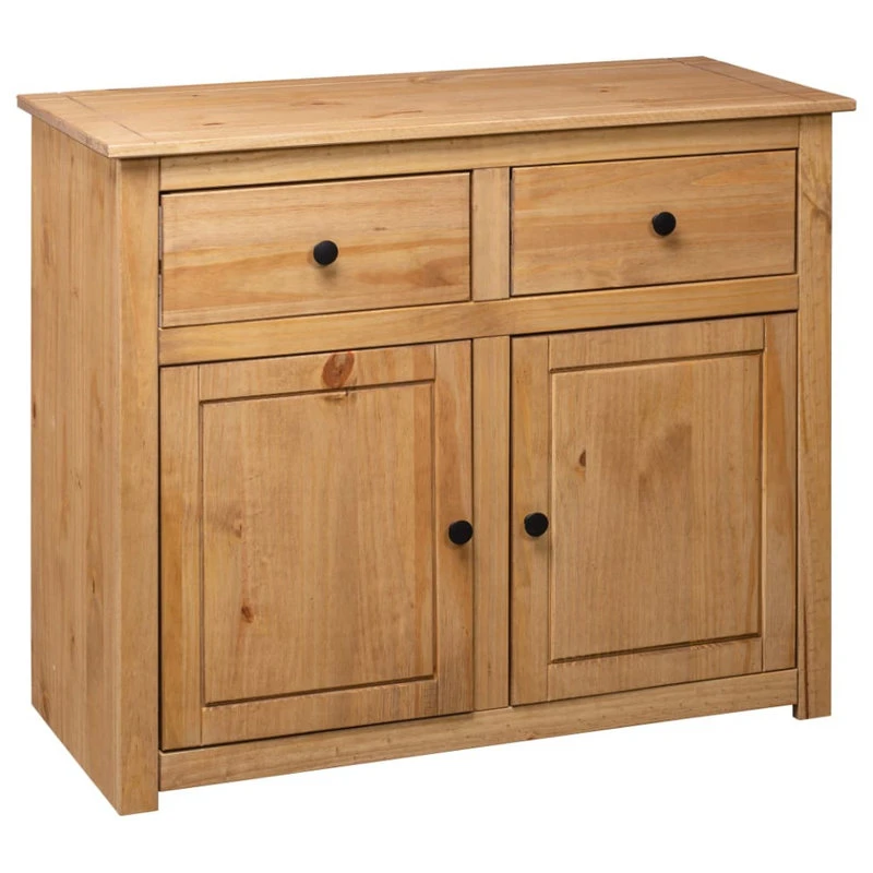 Featuring a rustic and trendy design, this solid wooden sideboard will make a decorative as well as practical addition to your decor. Designed with 2 drawers and 2 doors, the sideboard keeps your magazines, books, DVDs and multimedia devices well organized and within reach. Its sturdy top is ideal for placing decorative items such as vases or potted plants. The cabinet is made of solid pine wood. Every step of the process is carried out with the greatest care, be it polishing, painting or lacquering. The exquisite craftsmanship and the aesthetically-appealing wood grains make every piece of furniture unique and slightly different from the next. Important note: colors and grains may vary from piece to piece, making each of our cabinets unique; the delivery is random.