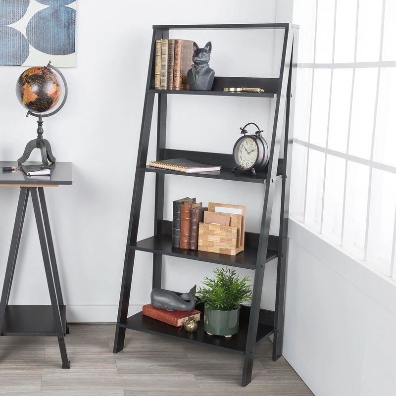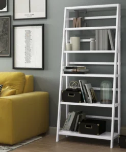 Fun and functional, this wood ladder bookcase will fulfill all of your organizational and decorating needs. Built with durable shelving in a ladder frame, this up-to-date unit is made of high-grade MDF that will display any of your media and trinkets wonderfully. The clean and simple lines of this bookshelf make for a modern and transitional appeal with a sense of sophisticated charm that you’ll enjoy in your living room, hallway, entryway, or bedroom.