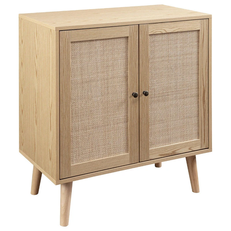 Quell your wanderlust, and greet beach bungalow vibes and a cool, coastal aesthetic in your personal space when you display this boho two door accent cabinet. A solid wood build contrasted by authentic rattan-detailed double doors helps craft the most inviting interior in your bedroom or entryway. Let the adjustable shelf serve as a sanctuary for spare linens, sweaters, or dishware; or remove it completely for more customized storage. Ideal for both small and sprawling spaces, perch this style icon in any alcove to spotlight your favorite corner. Comprised of solid pine wood responsibly sourced from renewable forests, your future tidy-ups are sure to be sustainably stylish for years.