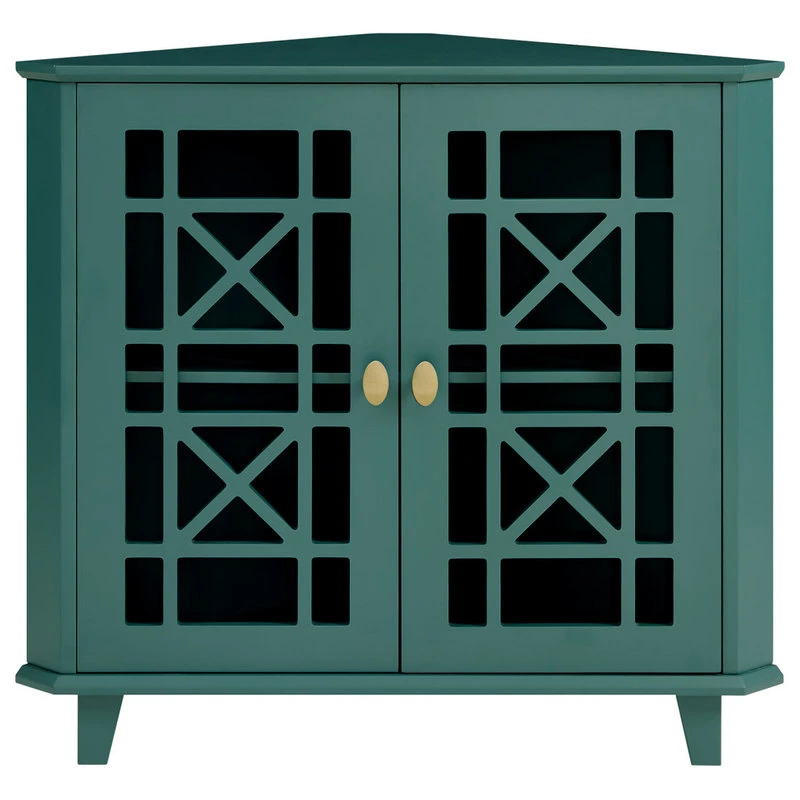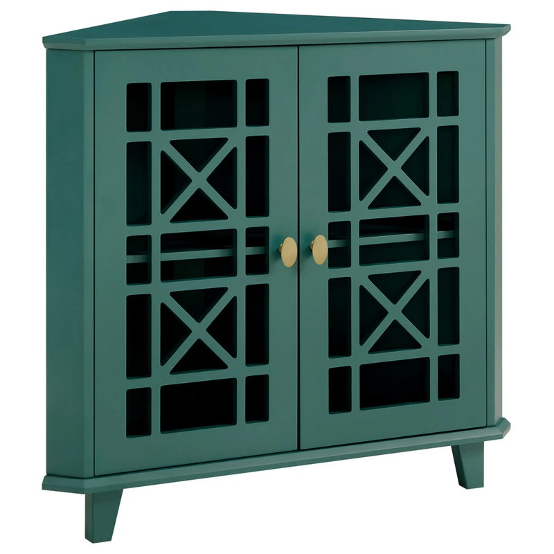 Walker Edison Gwen Fretwork Corner Accent Cabinet – Dark Teal