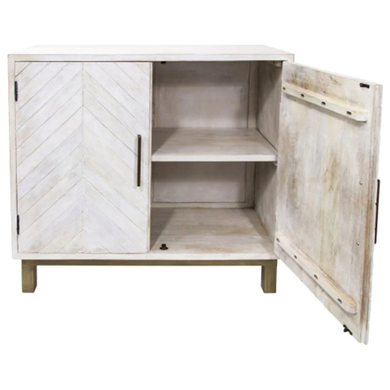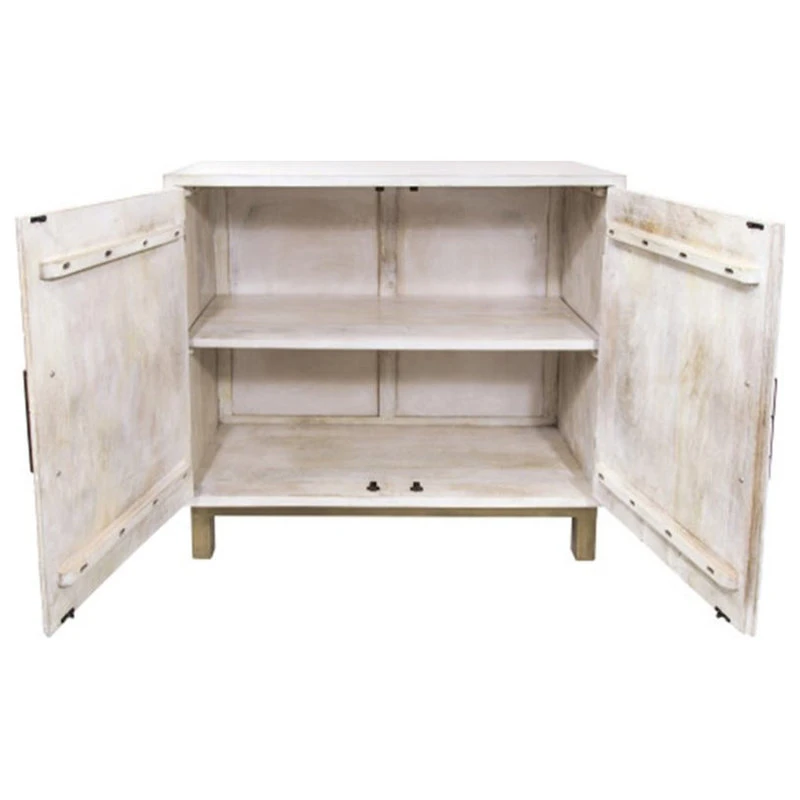 The Ashdla accent console table by Yosemite Home Decor is made from solid mango wood and has been handcrafted for style and storage convenience. Combining classic style with contemporary design this double door cabinet comes with a single inner shelf, and the light gray color will easily complement any living space, as well as add brightness and simplistic charm to your environment. Each cabinet is completed in an amazing lime wash finish and comes with a solid antique brass metal base and hardware. Each piece is a unique work of art, so slight imperfections are inherent to the handcrafted style, and no two are exactly alike. Dust with a soft dry cloth, and periodically use furniture polish or wax. Do not leave spills unattended. Protect from heat as wood expansion and contraction could occur with humidity.